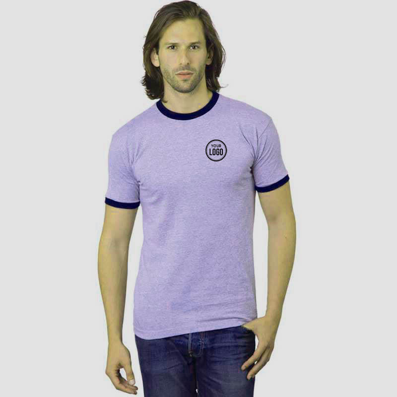 T-shirt Ringer Homme en Coton Tricoté Léger et Doux, Style Rétro Uni avec Bordures Contrastantes, Col Rond, Idéal pour Impression de Logo Personnalisé