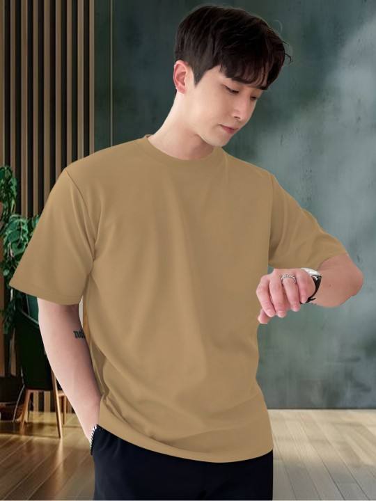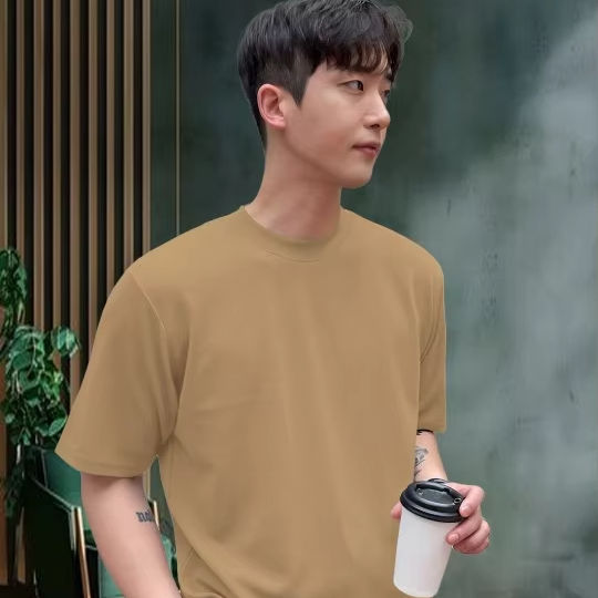 T-shirt coupe décontractée en coton à col rond solide pour hommes Produit en vrac fait à la main personnalisé