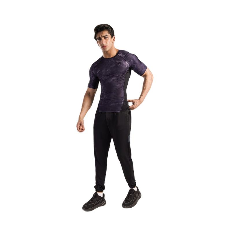 T-shirt de compression sportif pour homme en polyester et élasthanne, coupe ajustée, extensible, respirant, séchage rapide, pour la gym et l'entraînement, vêtement athlétique, OEM, personnalisation frontale