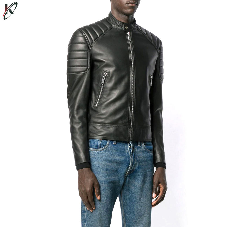 Veste en cuir véritable vintage fine pour homme, col montant, imperméable, coupe-vent, décontractée, pour l'hiver et la conduite