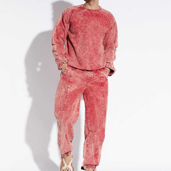 Ensemble de survêtement pour homme, printemps, uni, manches longues, pull-over, 100% coton, respirant, séchage rapide, grande taille, polaire, style streetwear