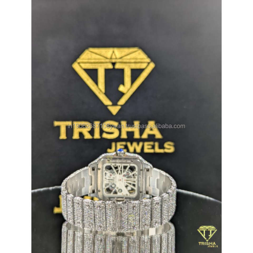 Montre pour homme avec boîtier carré entièrement sertie de diamants de laboratoire VVS, montre haut de gamme glacée par Trisha Jewels