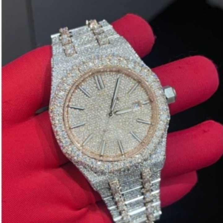 Montre pour homme en acier inoxydable, aspect entièrement serti de diamants, VVS1 Mossionite, montre-bracelet de luxe, cadeau en gros