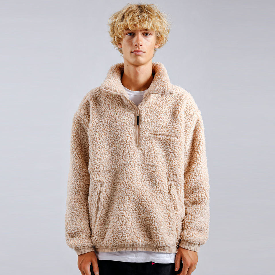 Men Stand Collar Half Zip Up Sherpa Jacket Men's Winter Warm Up Sherpa Jacket Fleece Coat Men's Outdoor Street Sherpa Jackets