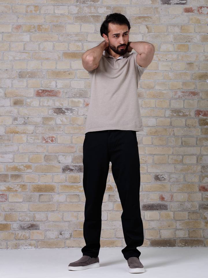 Pantalon chino droit pour homme, noir, classique, décontracté, en coton, taille élastique, détail fermeture éclair