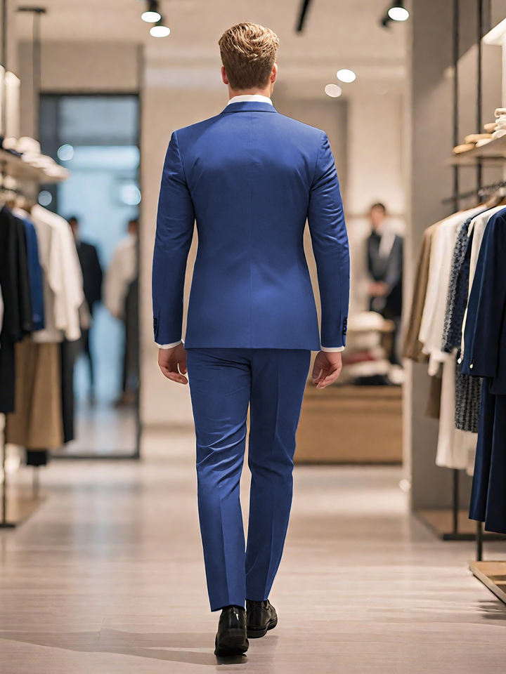 Costume d'affaires pour homme d'occasion avec pantalon, 2 pièces, simple boutonnage, style italien, costume bleu marine, anti-froissement et respirant
