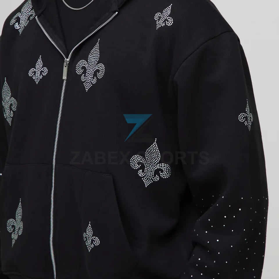 Sweat-shirt pour homme avec strass, design personnalisé, fournisseur de sweats à capuche personnalisés avec strass pour homme, mode haut de gamme
