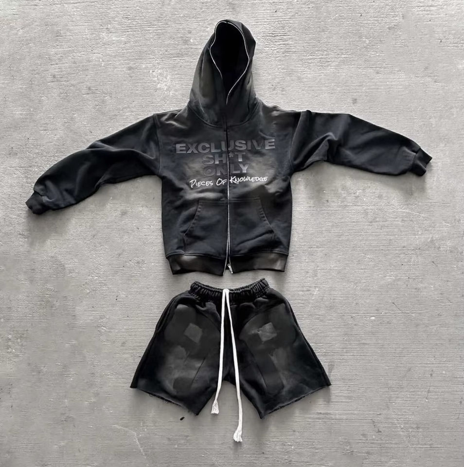 Ensembles de survêtements courts pour hommes, personnalisés, été, unisexe, en coton, 2 pièces, effet délavé, ensemble sweat à capuche et short
