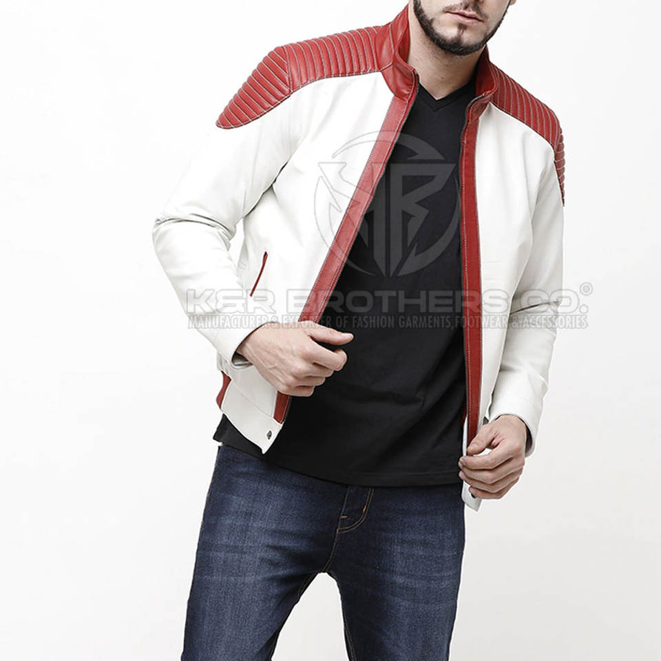 Veste d'hiver en cuir à la mode pour hommes, coupe ajustée, col montant avec logo sur le devant, vêtements d'extérieur respirants pour la saison hivernale