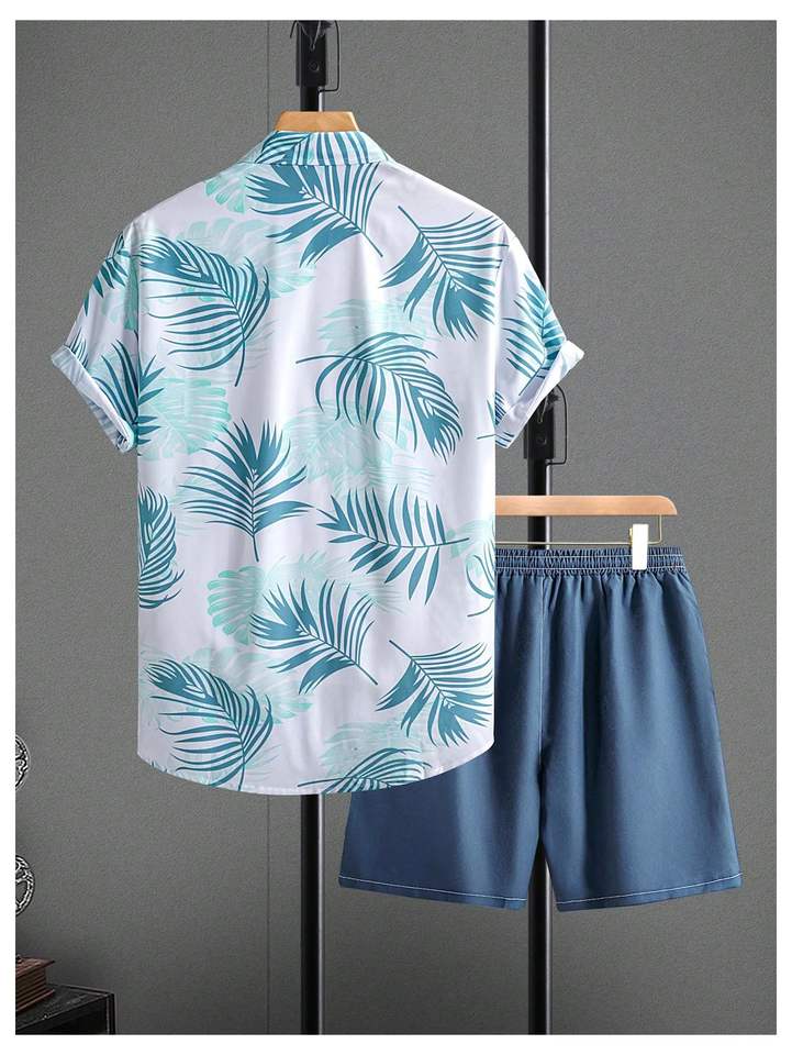 Ensemble deux pièces pour homme : chemise à manches courtes imprimée et short de plage assorti – Tenue décontractée estivale colorée pour les vacances