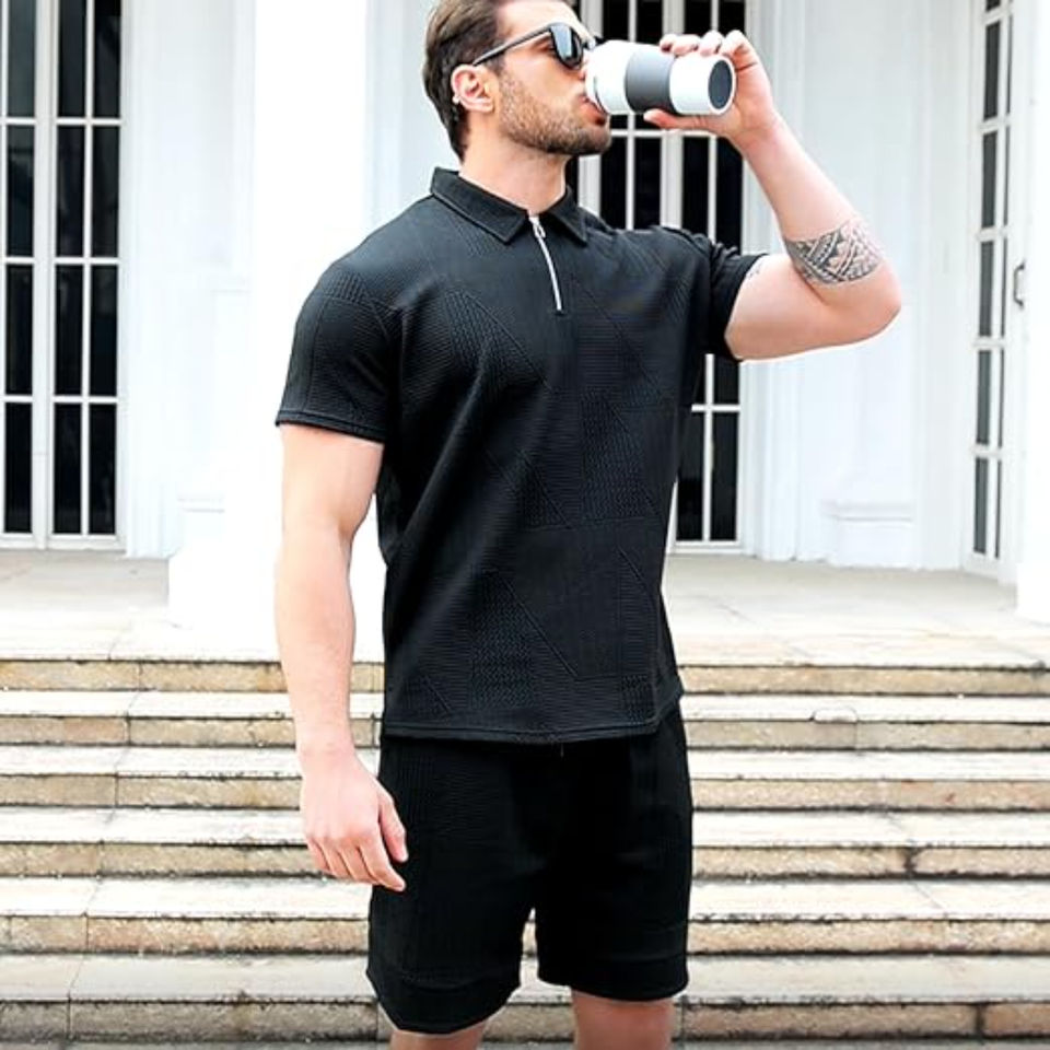 T-shirt et short assortis pour hommes, deux pièces, coupe confortable, parfaits pour les entraînements et les vêtements d'été décontractés.