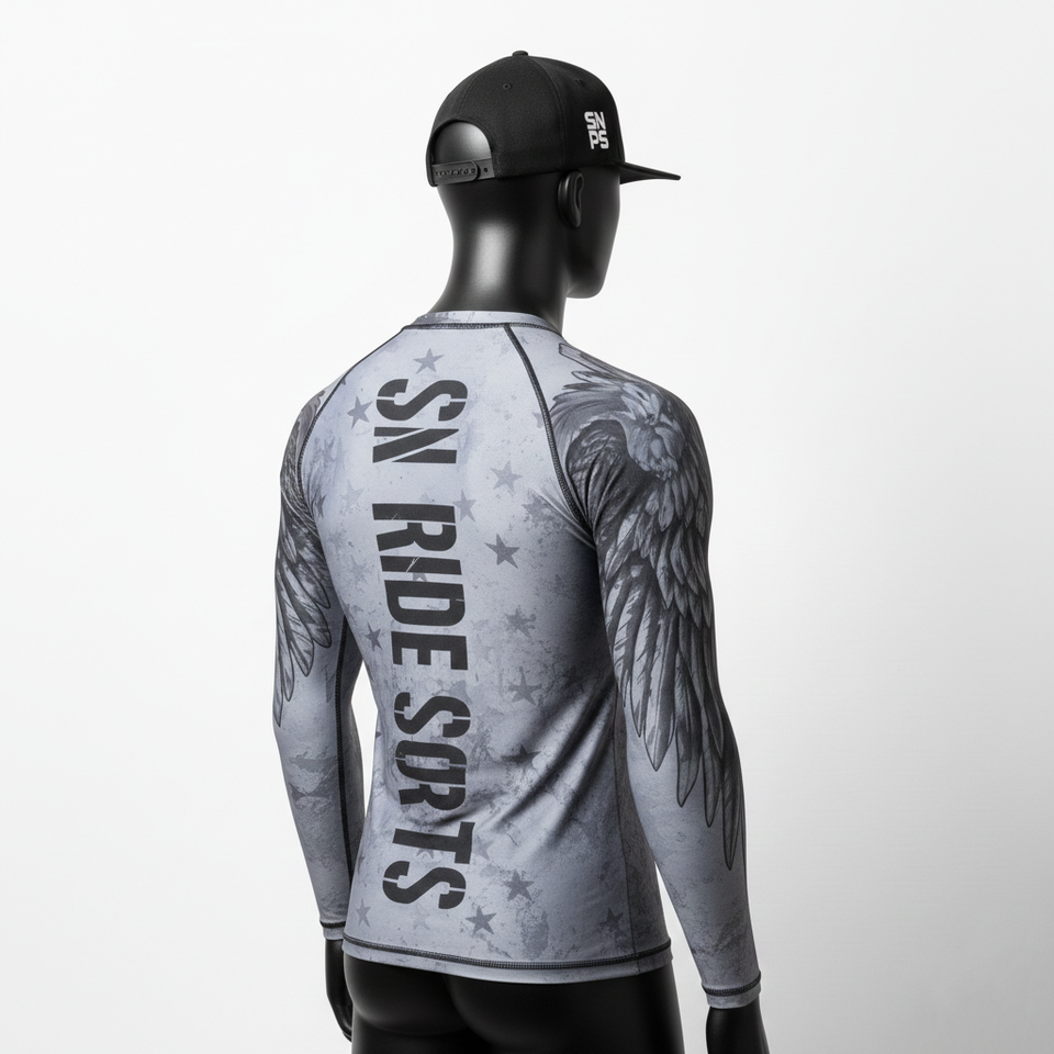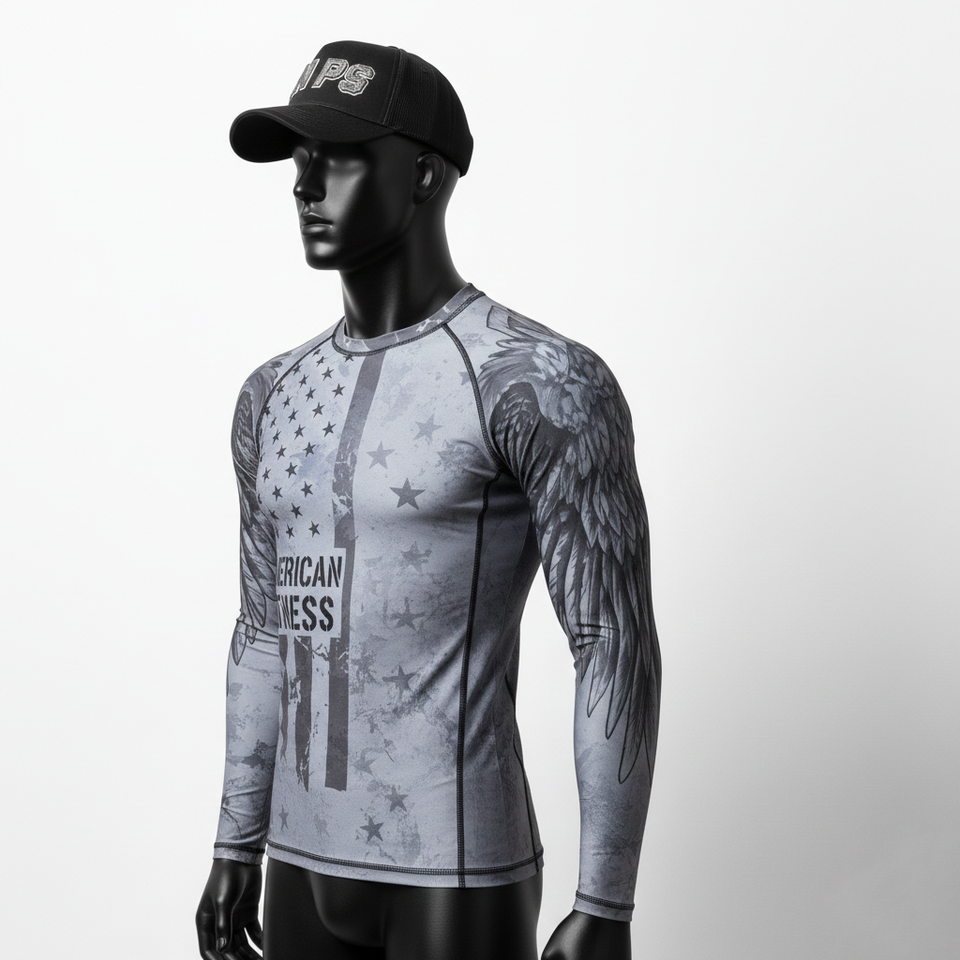 Rashguard à manches longues unisexe haute performance pour BJJ MMA, avec logo personnalisé, sublimation, couleur et taille sur mesure