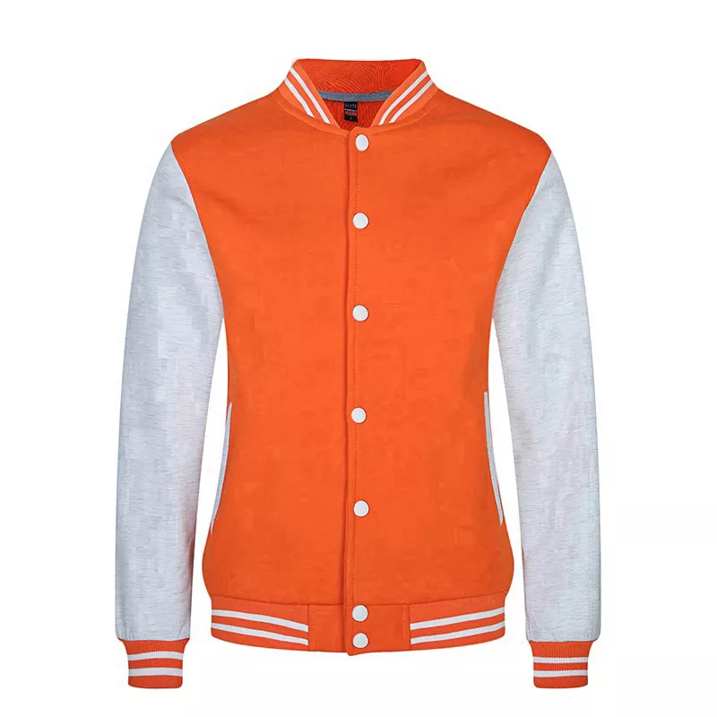 Veste Varsity Homme 100% Polaire Impression Logo Personnalisé Léger Fermeture à Bouton Unique Respirant Manches Complètes