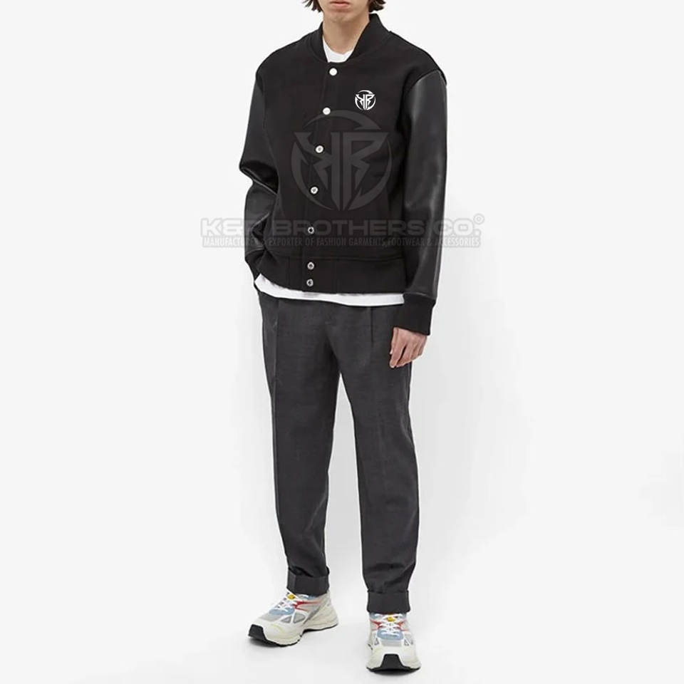 Mots-clés:Veste extérieure respirante de Varsity de douilles en cuir d'hommes