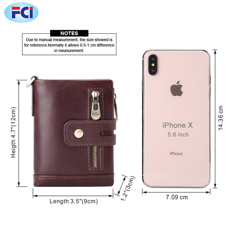 Portefeuille 100% cuir véritable avec fermoir éclair pour homme, Mini porte-cartes à chaîne, porte-monnaie