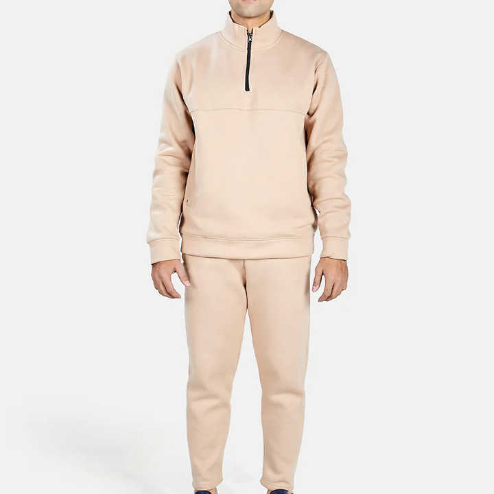 Ensemble survêtement chaud pour hommes survêtements à manches longues hiver hommes fermeture éclair quart coton polyester respirant confortable survêtements