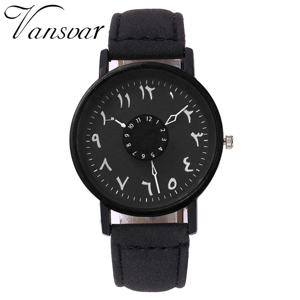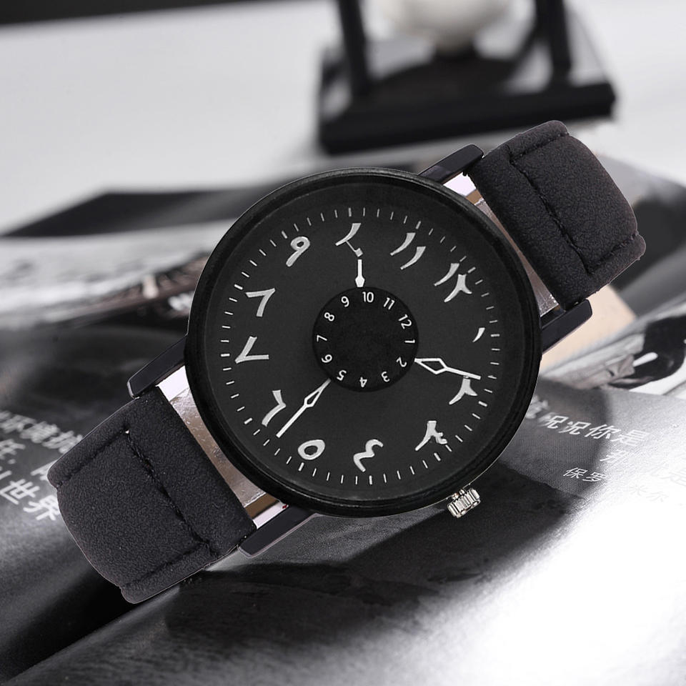 Montre pour homme Bracelet en cuir Chiffres arabes Montres à cadran rotatif pour la mode masculine Montres-bracelets à quartz décontractées Reloj