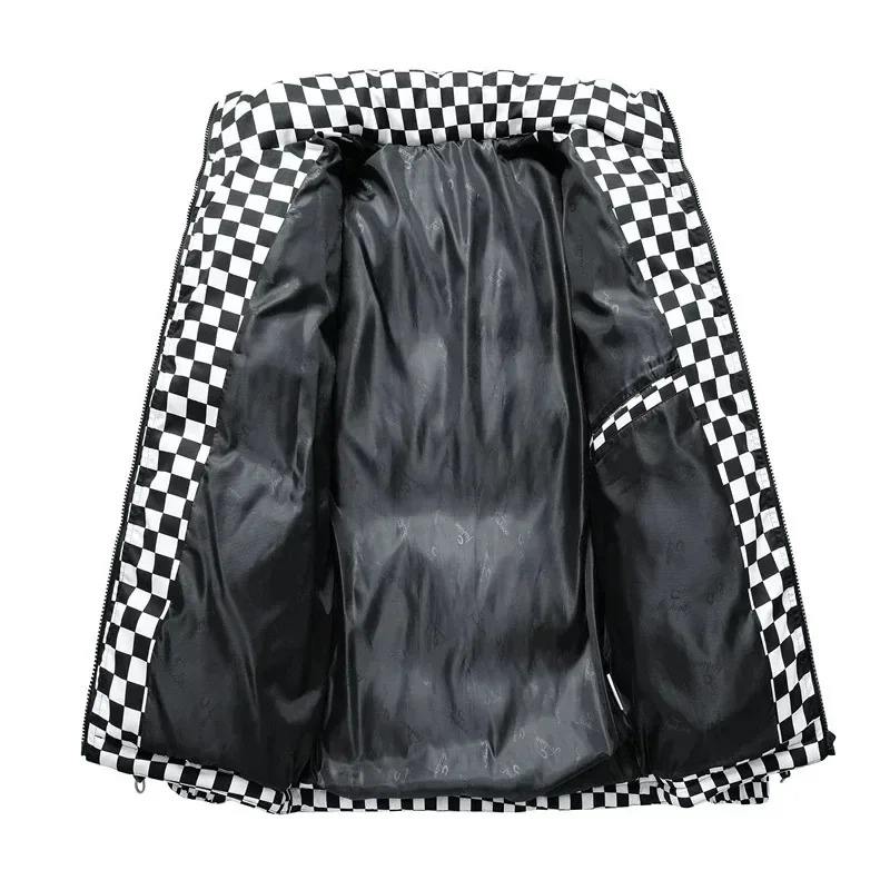 Manteau d'hiver épais et chaud bouffant imperméable pour hommes Parkas unisexes décontractées en coton imprimé à col montant d'automne en treillis