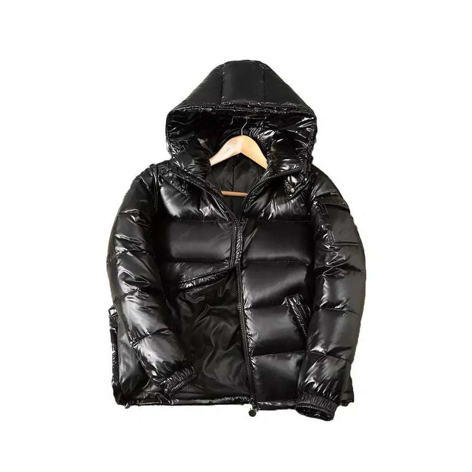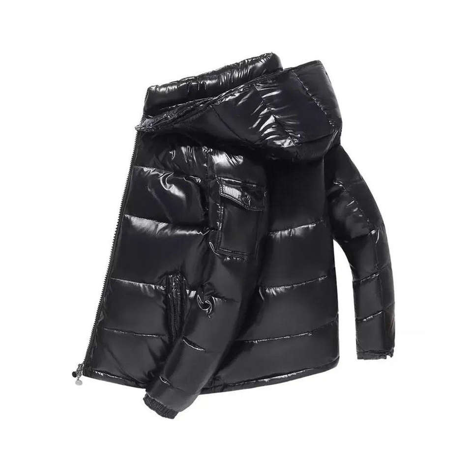 Men Women Canvas Stand Collar Puffer Jacket Shiny Parka Quilted Padded Coat Warm Outwear Winter Regular