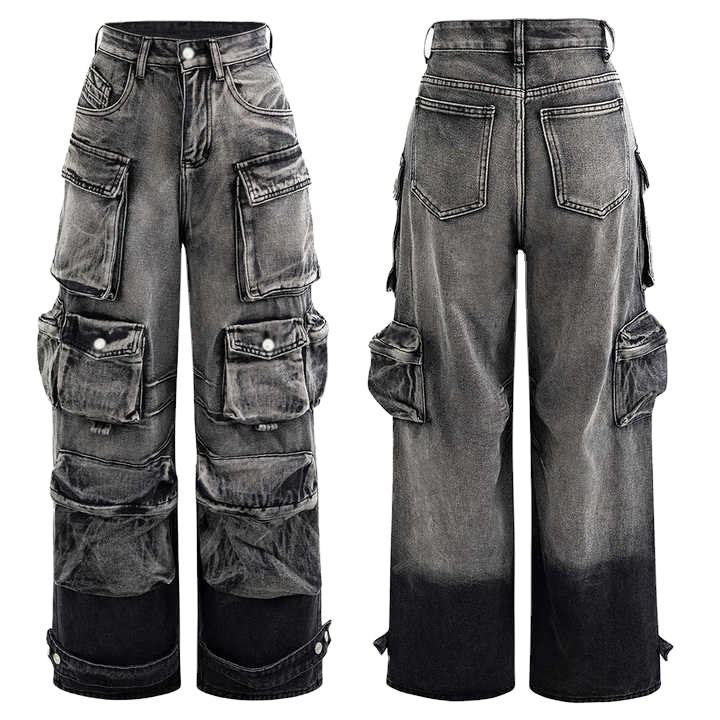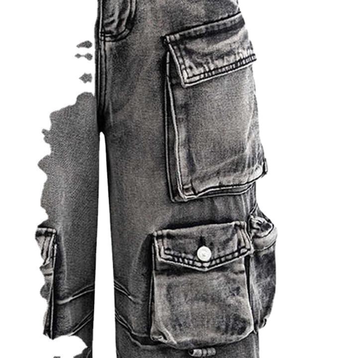 Pantalon en jean multipoches pour homme, style workwear, durable, décontracté, utilitaire, streetwear, coupe ample