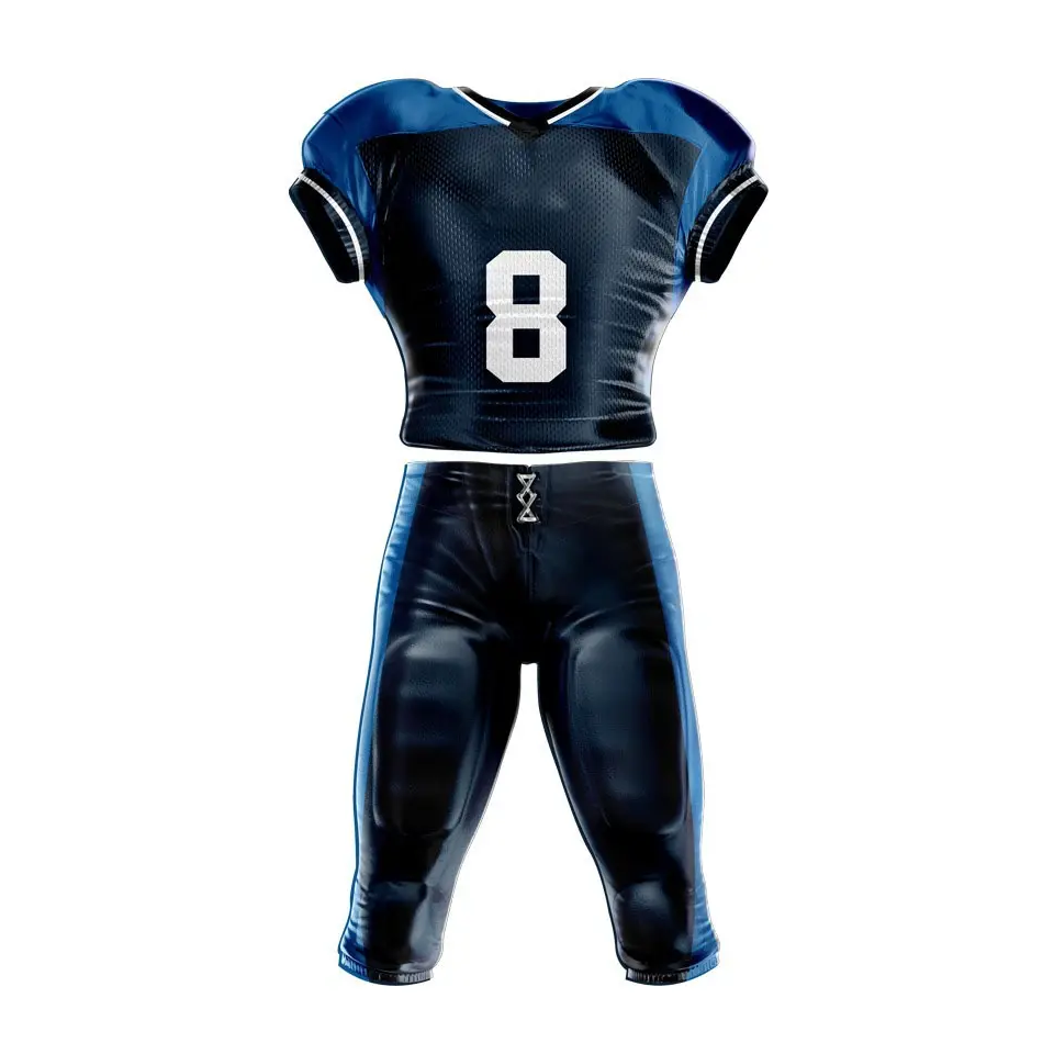 Uniforme sublimé de football américain à séchage rapide pour jeunes hommes, vêtements d'équipe durables en sergé, ensembles de pantalons en jersey pour le sport universitaire