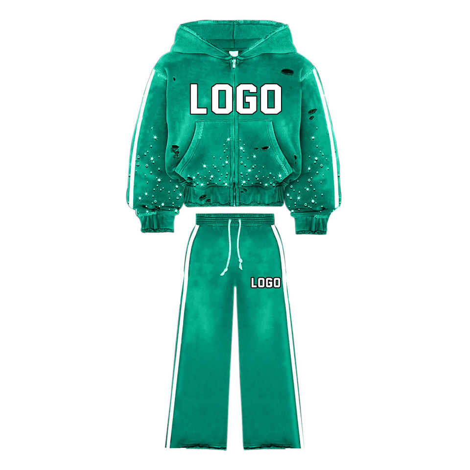 Sweat-shirt à capuche zippé pour hommes, pantalon de survêtement personnalisé avec strass, ensemble 2 pièces, ensemble streetwear à la mode, survêtement grande taille, survêtement unisexe respirant