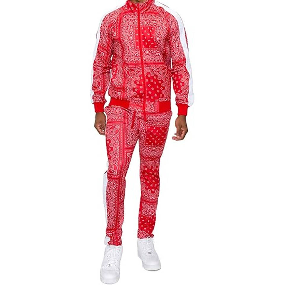 Ensemble survêtement pour homme avec veste à fermeture éclair et pantalon de survêtement à taille élastique, tenue de jogging athlétique deux pièces pour l'entraînement, bandana rouge