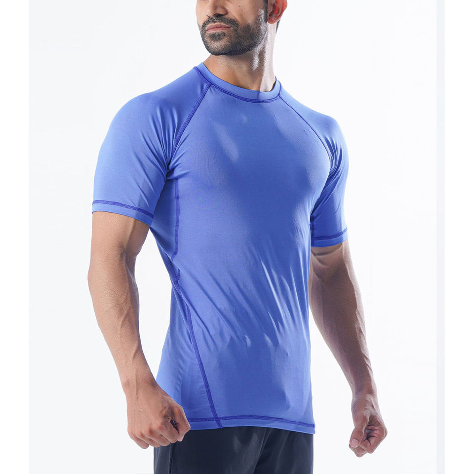 T-shirts de compression pour hommes, hauts de sport, fitness, athlétiques, coupe slim, tissu extensible, performance, manches courtes
