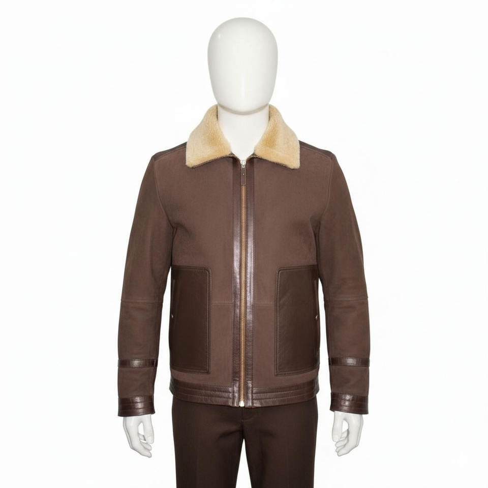 Veste en cuir pour homme, logo personnalisé, col rabattu, véritable daim de mouton, fermeture éclair, style streetwear.