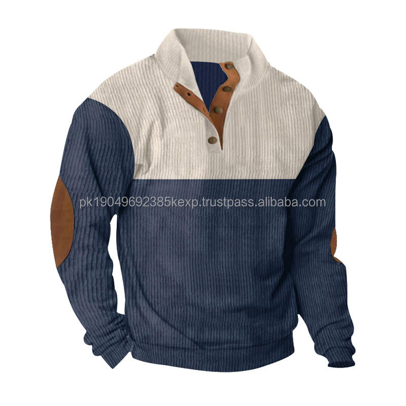 Men's 100% Cotton Corduroy Hoodie Casual Solid Color Block Stand Collar Pullover Sportswear Winter Washed Plain Dyed Digital