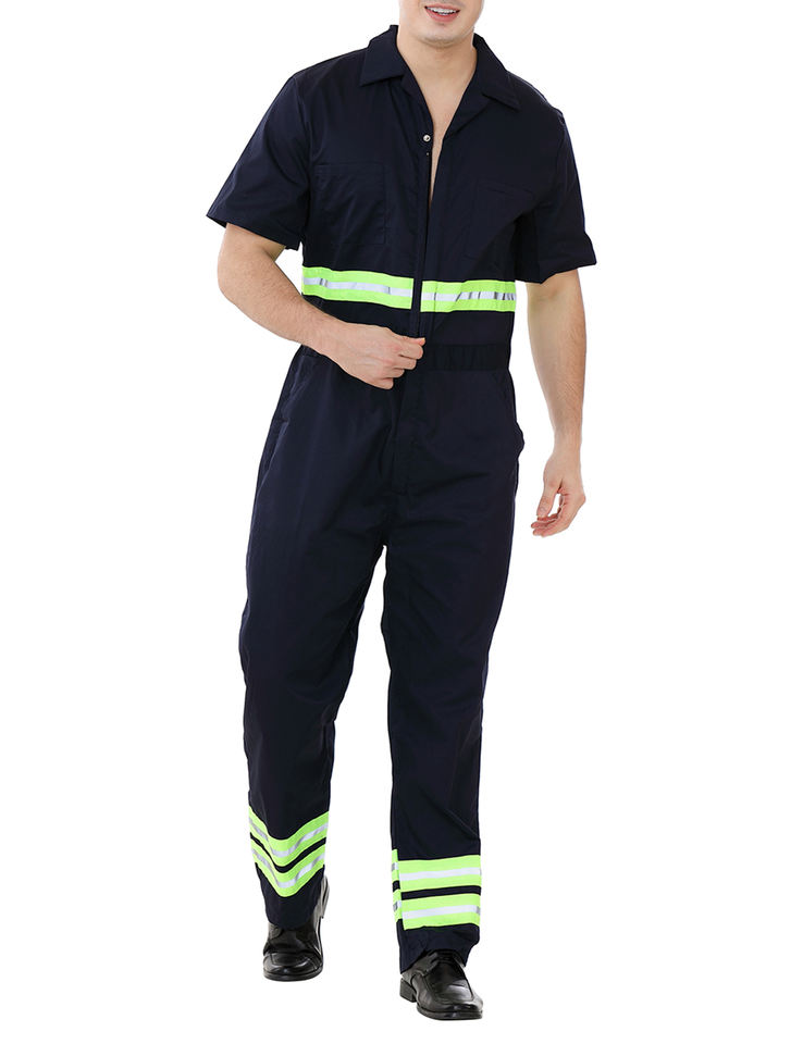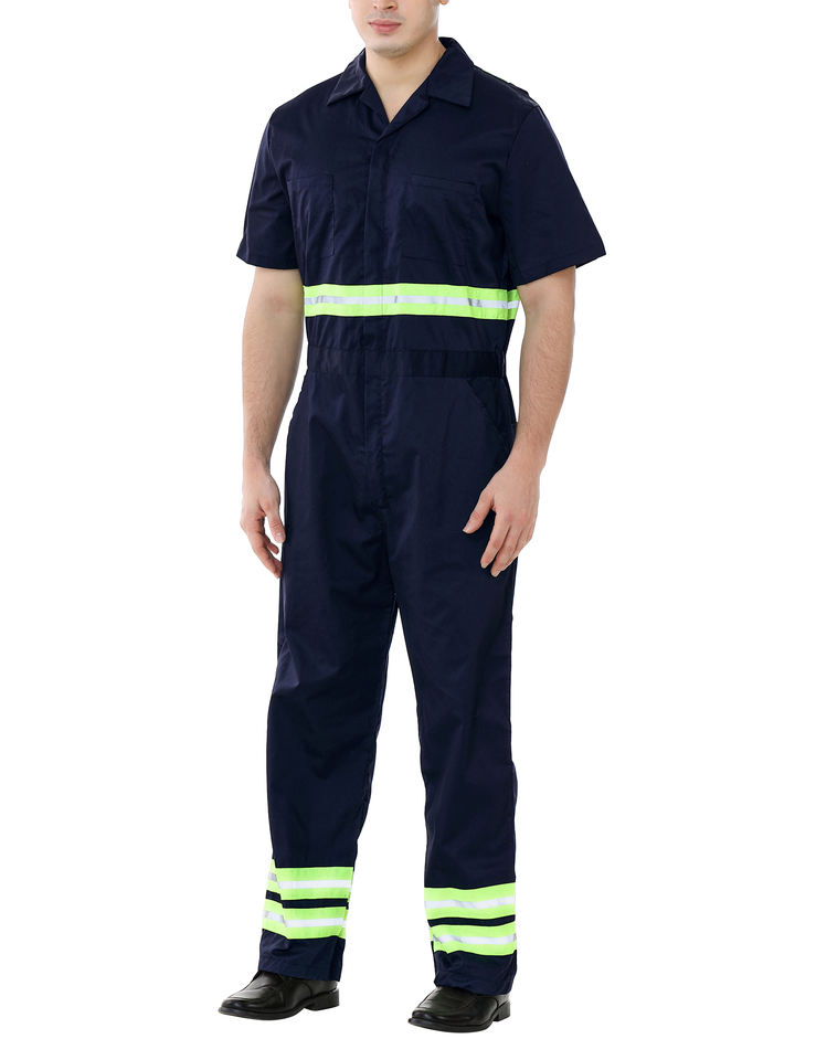 Combinaison de travail réfléchissante respirante 100% coton pour hommes, haute visibilité, manches courtes, service OEM