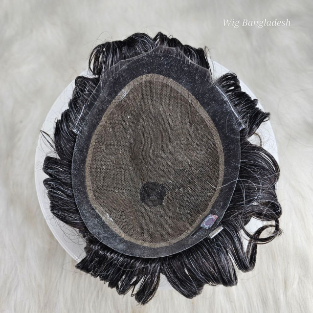 Perruque Toupet Cheveux Humains Remy 100% pour Homme Style Indien Vagues d'Eau Texture Cheveux Raides