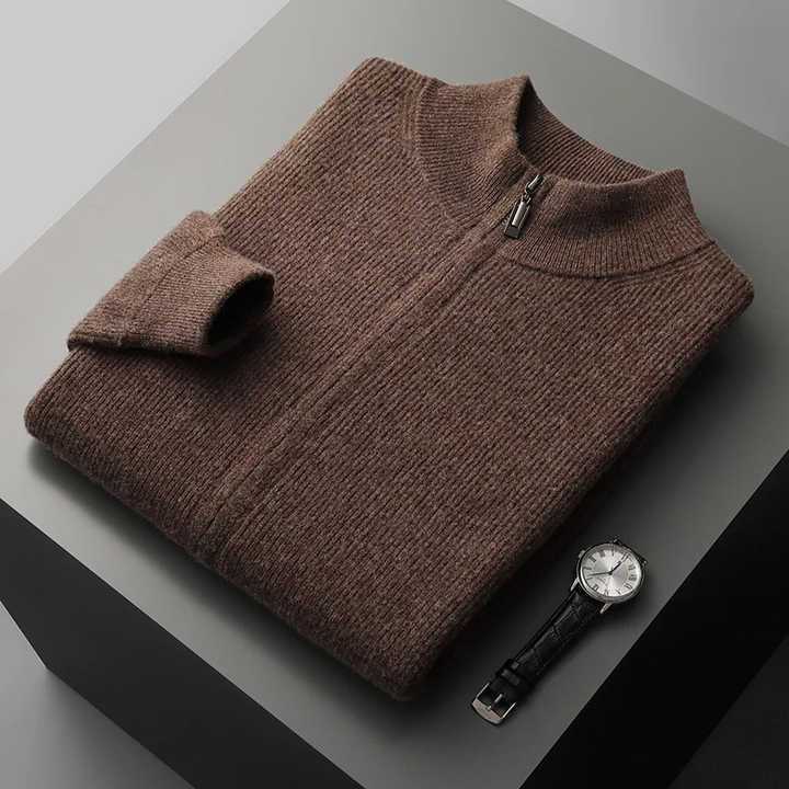 Pull cardigan en tricot torsadé respirant 100% laine pour homme Mode d'hiver