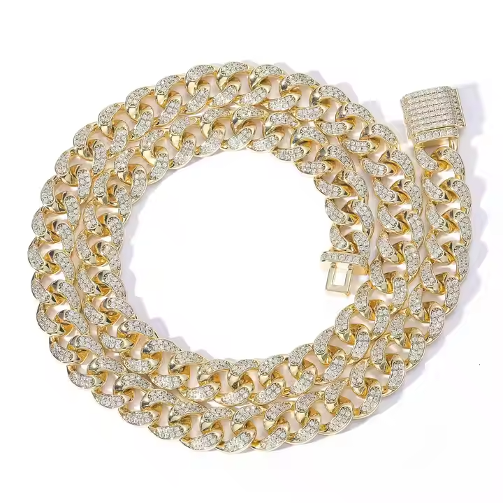 Chaîne à maillons cubains pour homme de 12mm avec diamant cultivé en laboratoire Collier Hip Hop en or 10 carats/argent 925