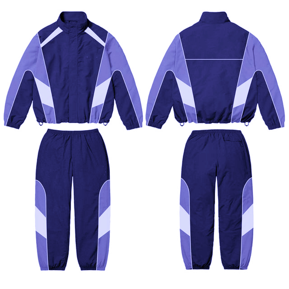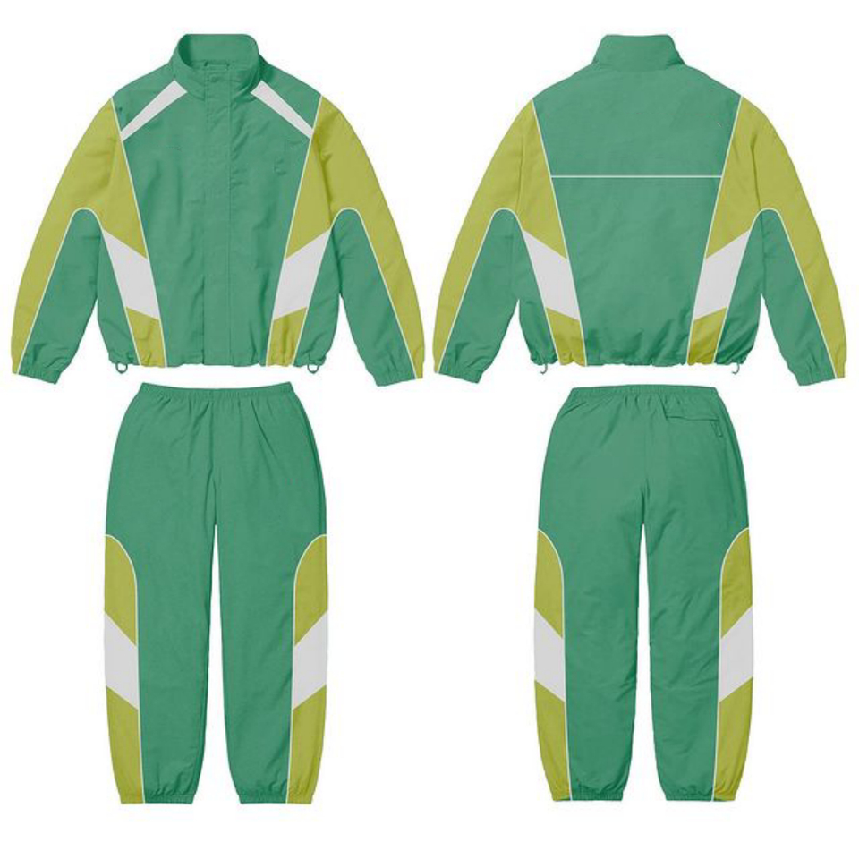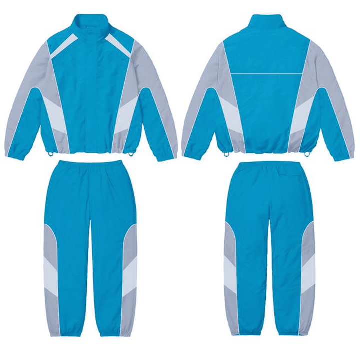Ensemble de survêtements 2 pièces en nylon et polyester de haute qualité pour hommes, logo réfléchissant unisexe à motifs de blocs de couleurs, meilleure vente de sport