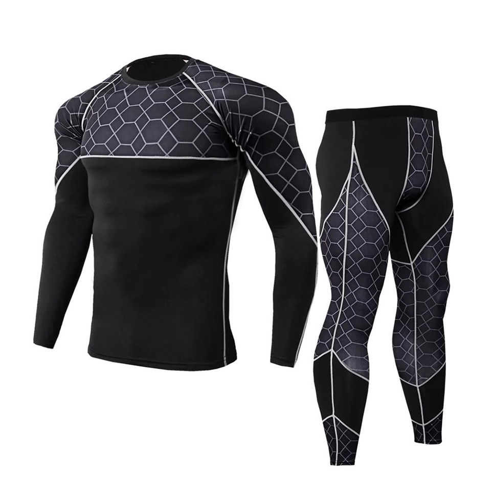 Streetwear d'hiver unisexe 2 pièces ensemble solide de compression pour Gym Fitness Workout respirant à séchage rapide