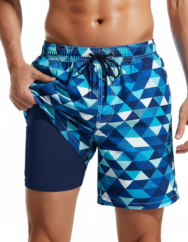 Short de bain imprimé floral 2-en-1 à séchage rapide pour hommes vente en gros de doublure de compression taille moyenne en tissu tissé maillot de bain animal plante