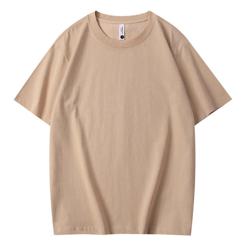 T-shirt à manches courtes et col rond en coton pour hommes, 200g, couleur unie, hauts décontractés simples et amples, sonnerie à conception vierge Offre Spéciale