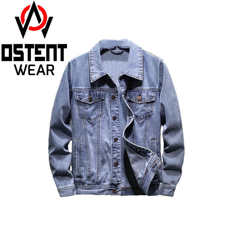 Veste en jean bleu uni 2024 pour hommes, haut de rue avec broderie décontractée, décor grande taille, mode d'hiver