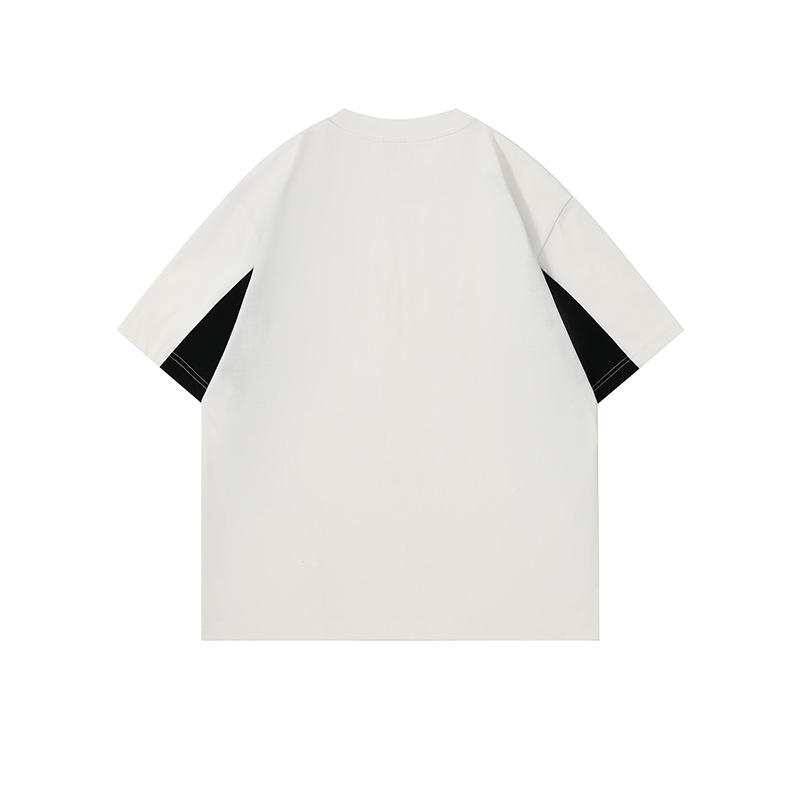 T-shirt de basketball pour homme en coton 100% respirant, anti-plis, à séchage rapide, col rond, 220 GSM, avec empiècements, style streetwear, épaules tombantes, META