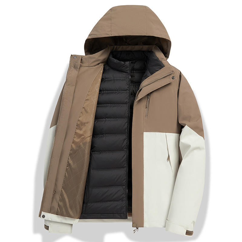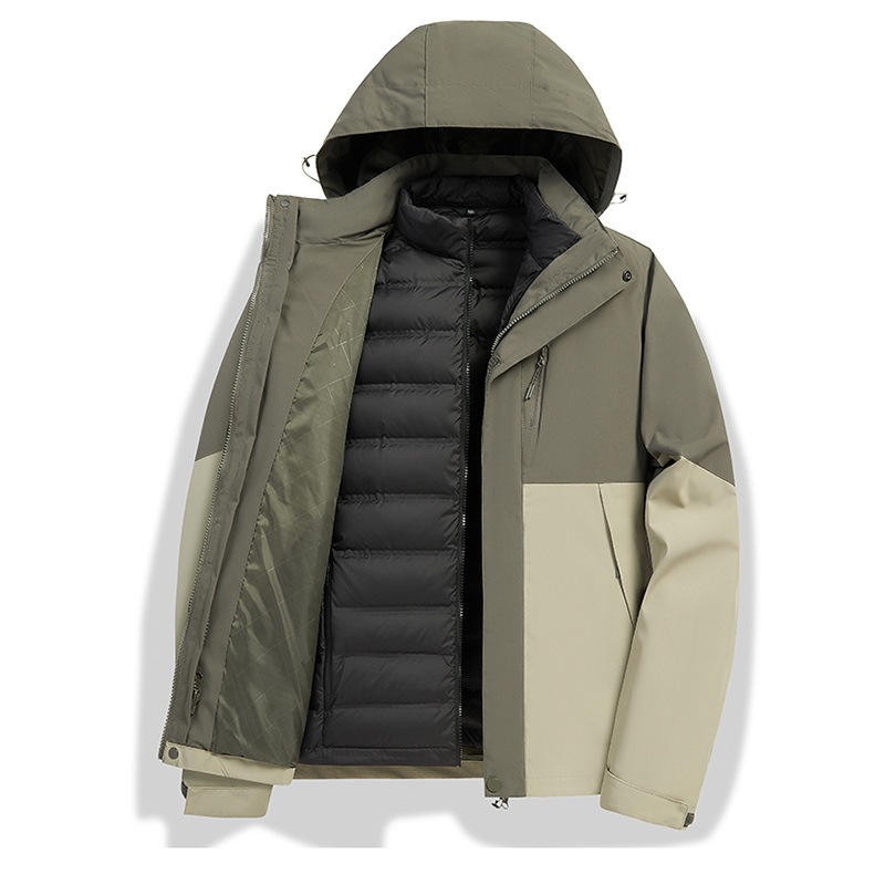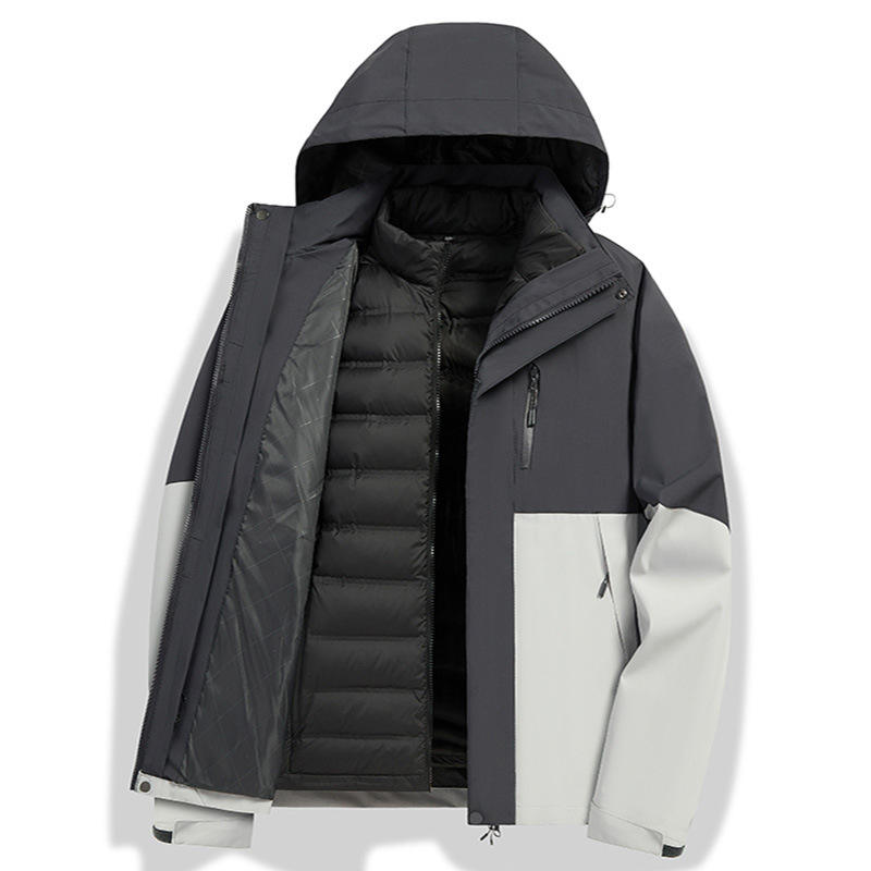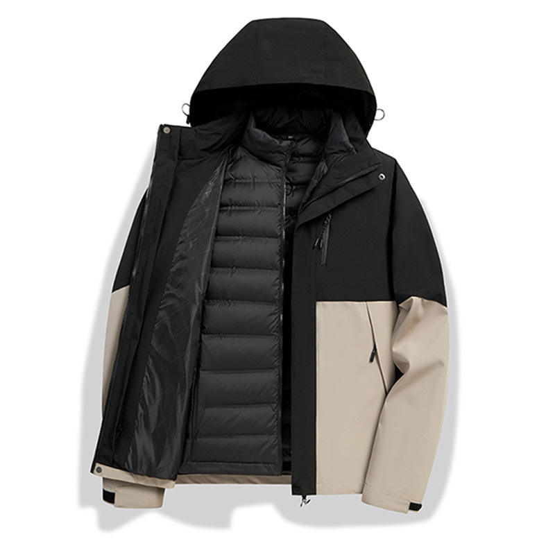 Veste d'extérieur 3 en 1 pour homme avec doublure en duvet amovible, parka imperméable pour le travail et les occasions professionnelles