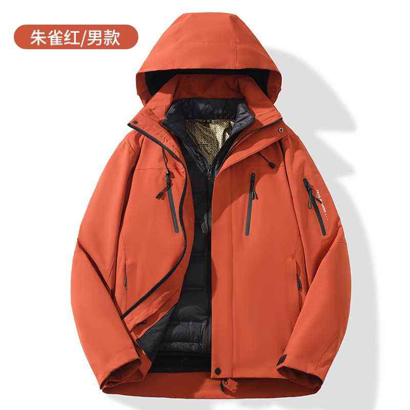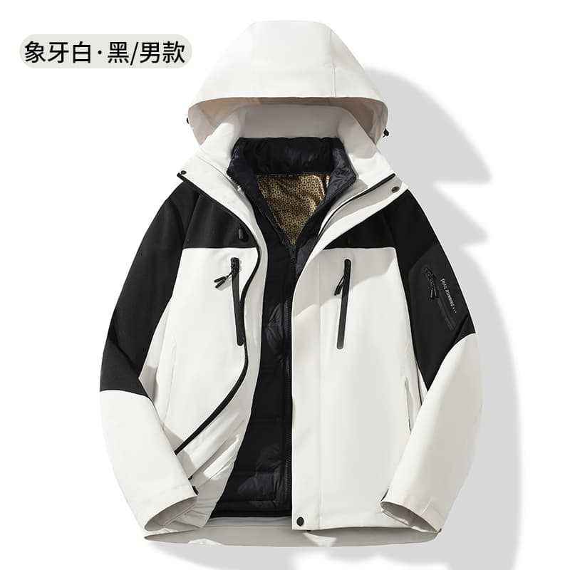 Veste d'extérieur 3 en 1 pour homme, doublée de duvet, coupe-vent, avec doublure intérieure, couleur unie, style workwear contrastant