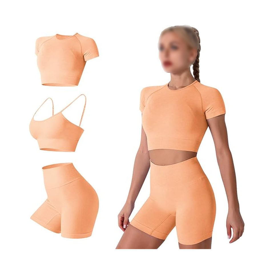 Ensemble d'entraînement 3 pièces sans couture pour homme, taille haute, pantalon de sport, soutien-gorge orange vibrant, respirant 100% coton
