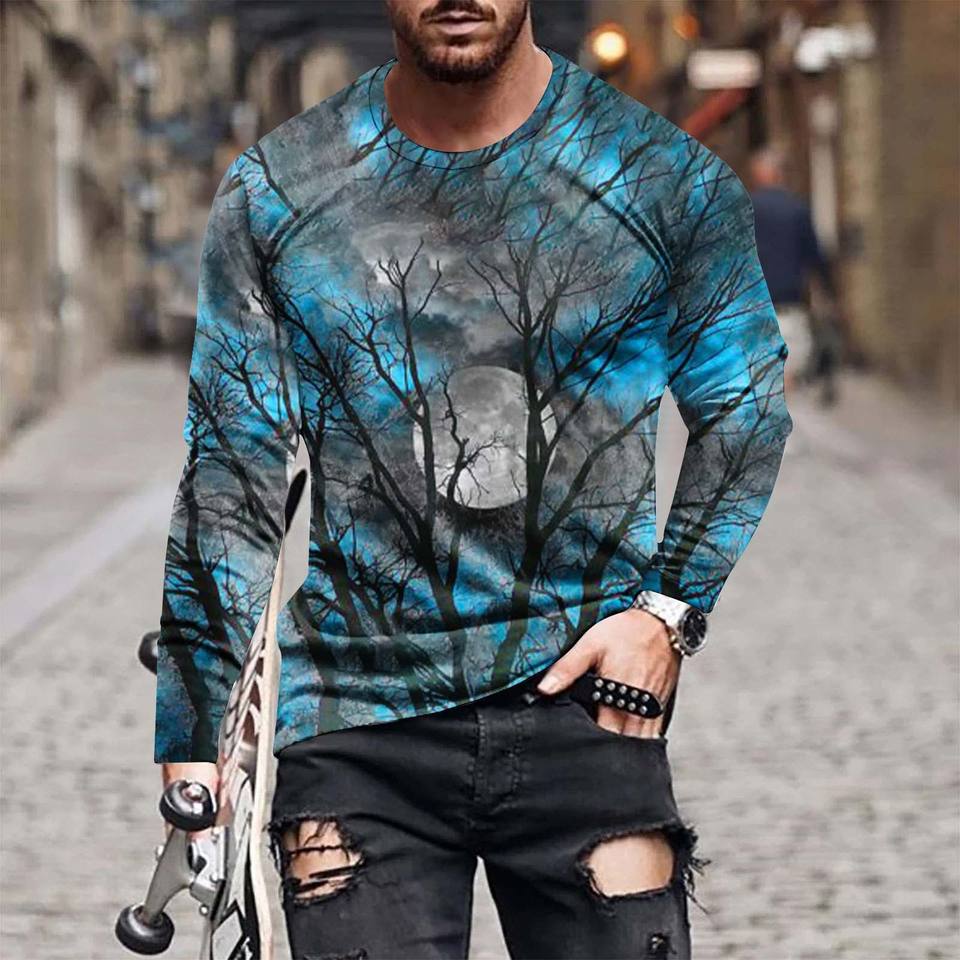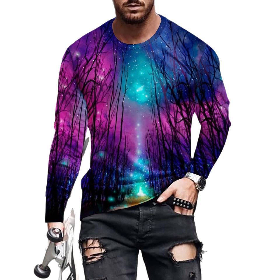 Men's 3D Printed Spider Web Long Sleeve T-Shirt Halloween Costume Purple Black Regular Fit Knitted Polyester 2025