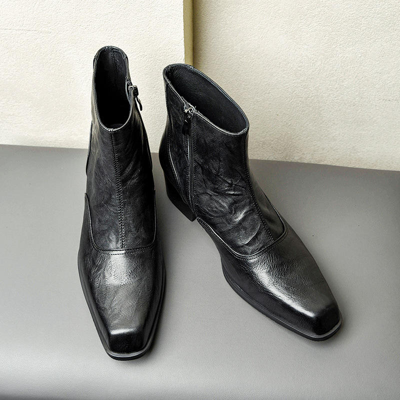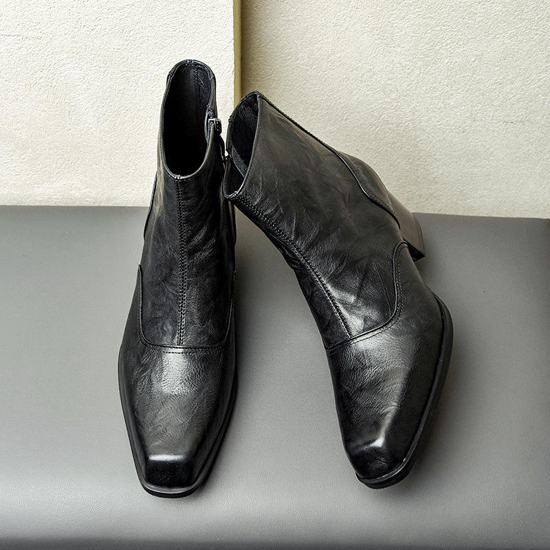 Bottes à talons hauts pour hommes, rehaussant la taille de 5 cm, style britannique 2026, bout carré, en cuir véritable, avec fermeture éclair latérale, livraison directe