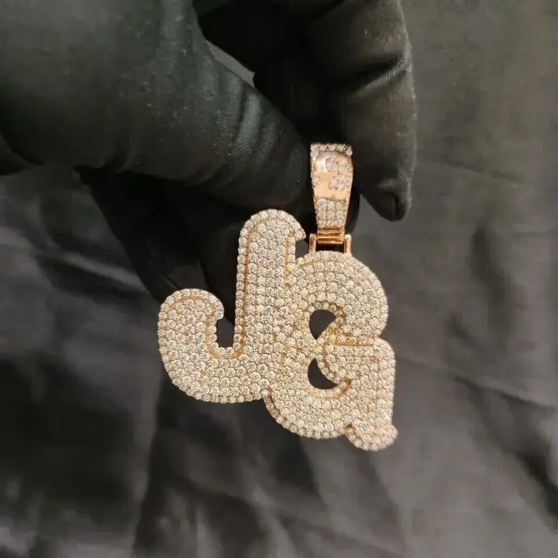 Men's 925 Sterling Silver Pendant with Round Cut Moissanite Diamond Gold Plated Hip Hop Style Cute Fashion Jewelry Iced Charm