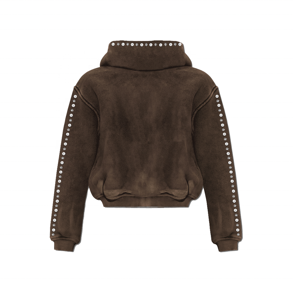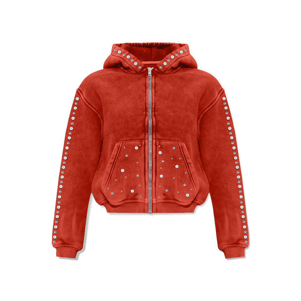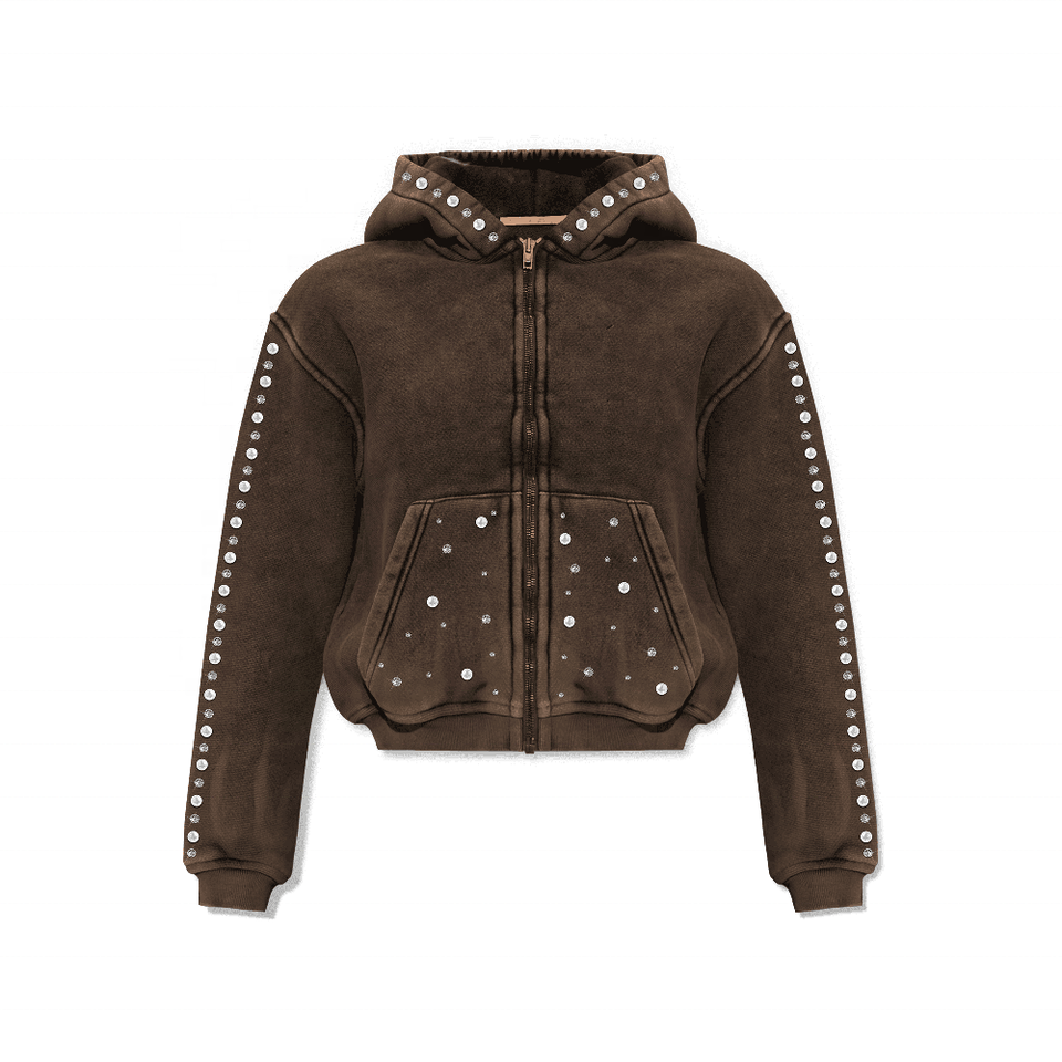 Sweat à capuche d'hiver pour homme, coupe classique, 100% coton, lavage à l'acide, impression DTG 400GSM, accents de strass complets, personnalisable