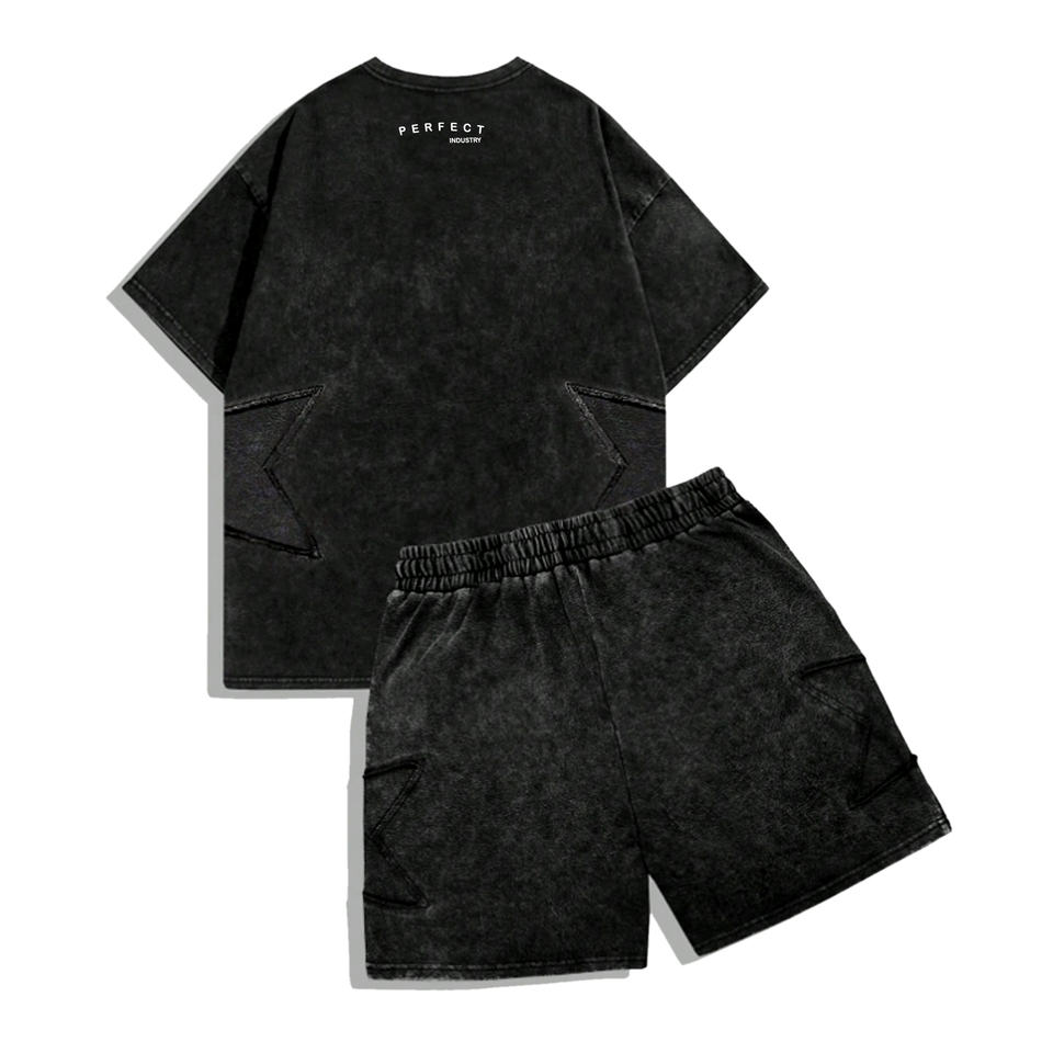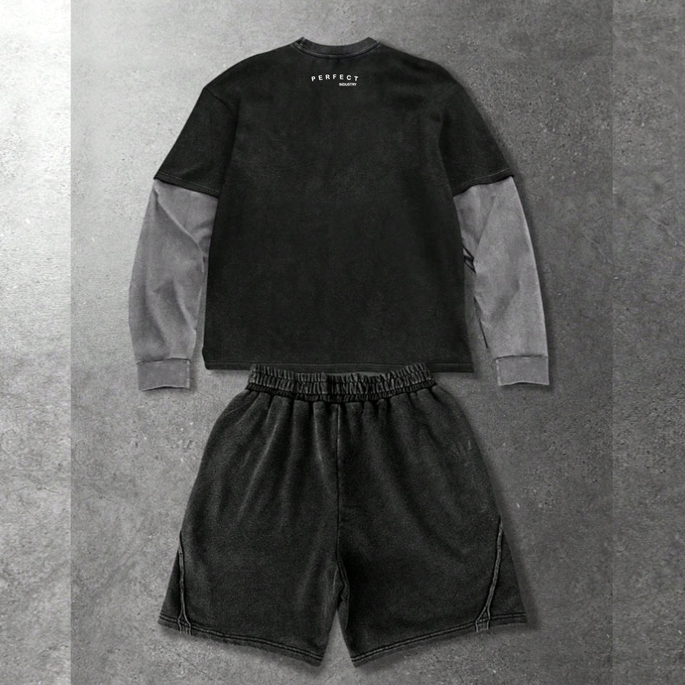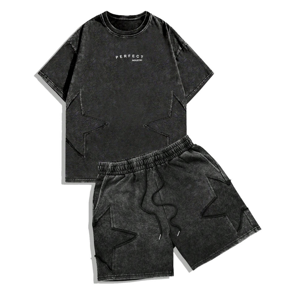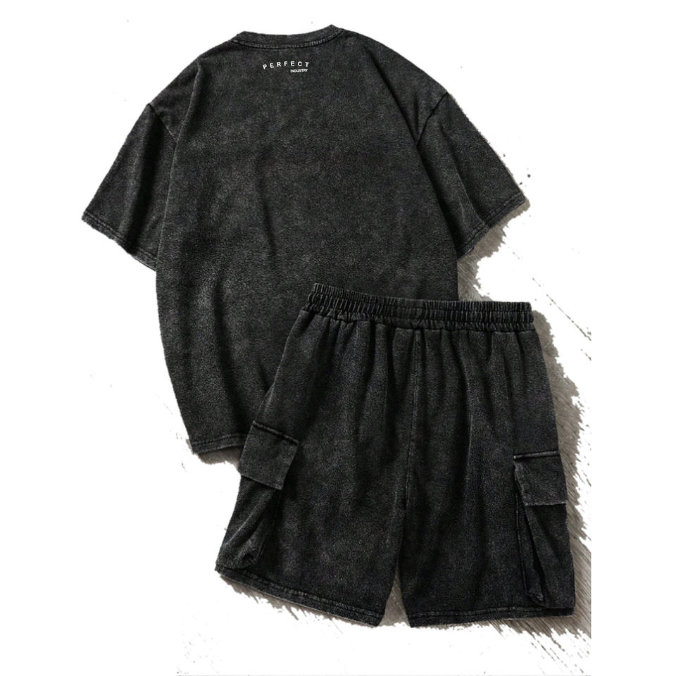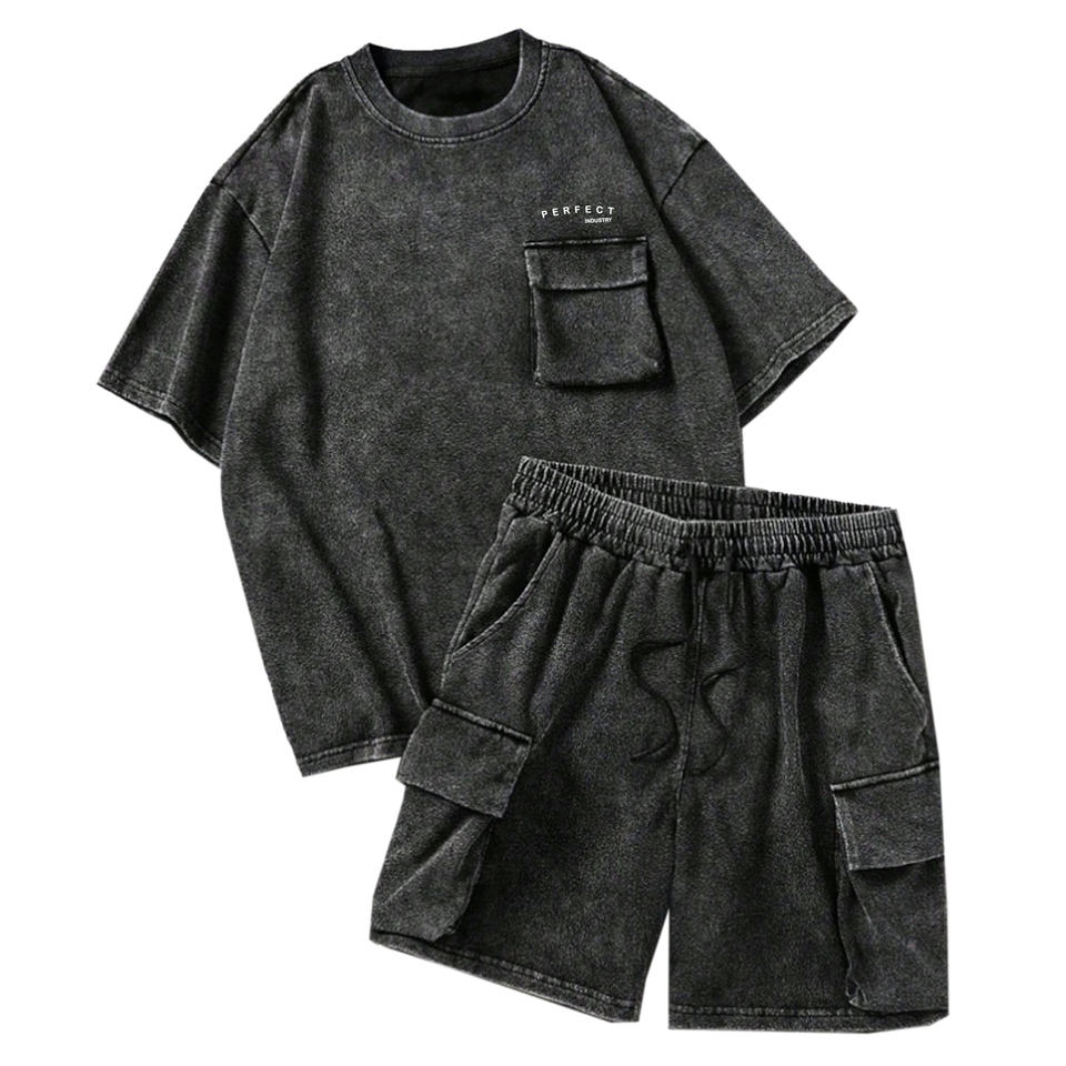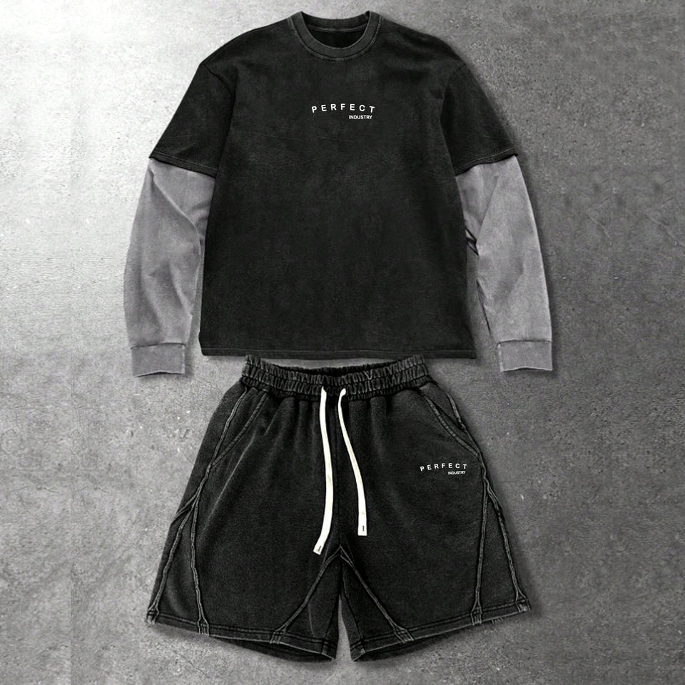 Ensemble T-shirt et short pour homme, effet délavé, patchwork, design personnalisé, ensembles d'été pour homme, décontractés, 2 pièces, ensemble de t-shirts vintage