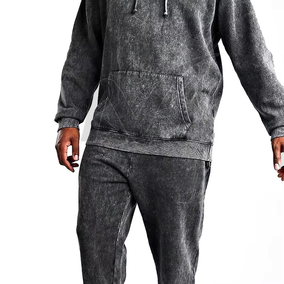 Survêtement Acid Wash pour homme-Ensemble deux pièces à la mode avec effet délavé unique-Idéal pour les tenues décontractées et les streetwear urbains