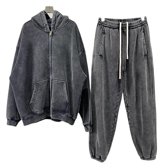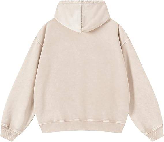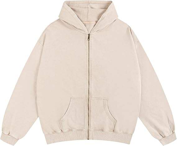Sweat à capuche zippé pour homme, effet délavé, 100% coton, molleton épais, coupe oversize, respirant, streetwear vintage, hiver